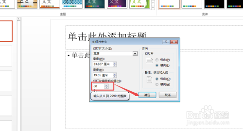 然后在呈现的菜单中点击 自界说幻灯片大小 选项,然后在打开的页面中输入 幻灯片编号肇端值(0到9999的整数),然后点击 确定 按钮,就可以看到幻灯片左上角的编号肇端值从适才输入的整数起头了。