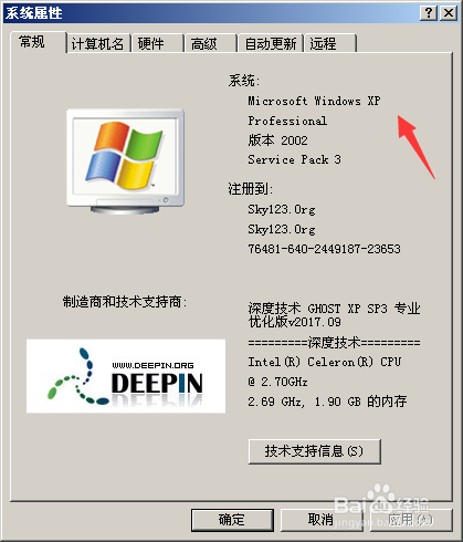 如图,在“常规”选项卡内,我们可以看到“系统”一项,若是没有写64位,就代表是32位的。