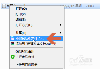 若是之前正常安装了winrar软件,则弹出菜单中会有【添加到压缩文件】选项,鼠标左键点击该选项。