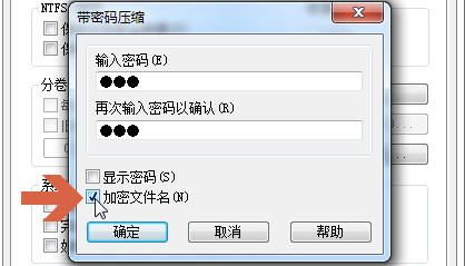 若是不想让其他人看到被压缩加密文件的文件名,可点击勾选【加密文件名】选项。