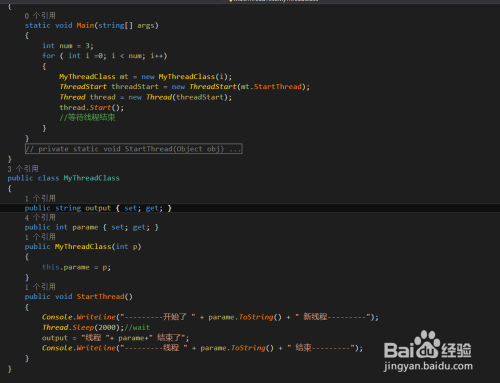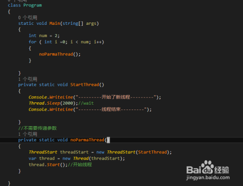 2. 无参数的多线程。在Program.cs文件里面写入如下代码