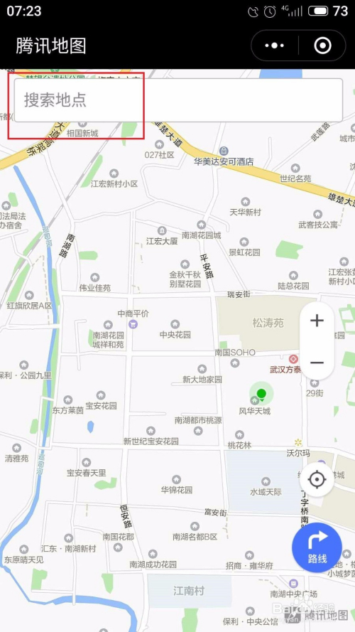 第六步:此时就开启了微信导航功能,下面我们来利用微信导航功能,如下图所示,我们在微信腾讯地图小法式上方的找到【搜刮地址】输入框,我们点击此输入框。