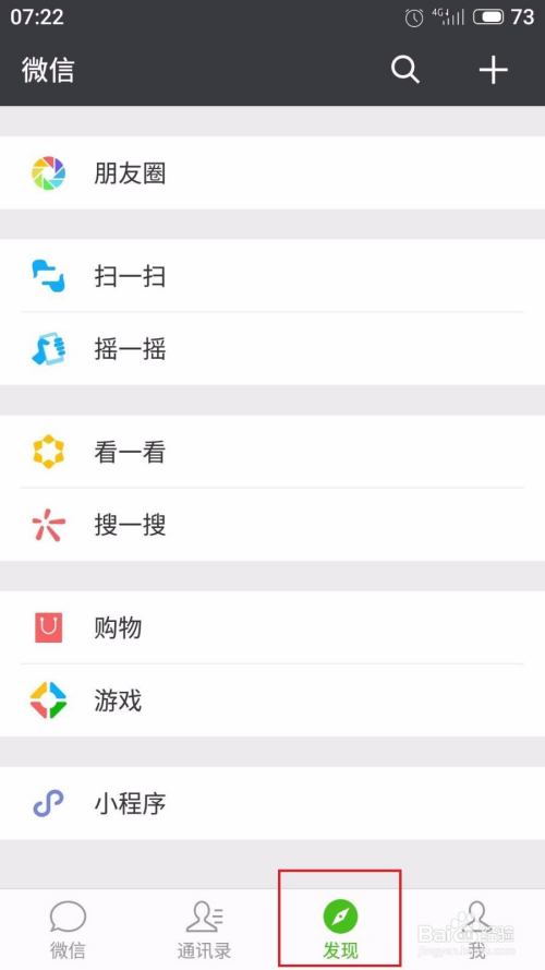 第一步:首先我们来找到微信导航功能并将其开启。我们打开本身的手机微信,在微信本家儿页下方点击【发现】,然后点击【小法式】,如下图所示。
