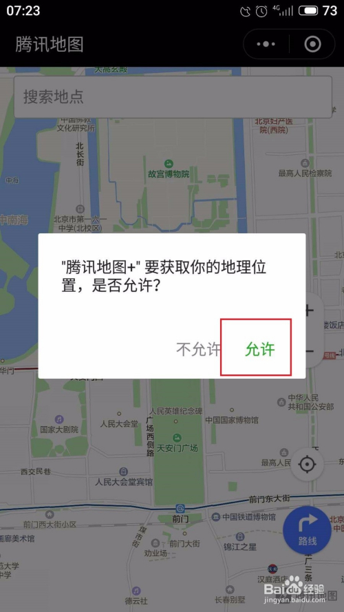 第五步:此时将进入【腾讯地图】小法式,若是是在微信中初次进入,则将弹出位置获取许可对话框,我们选择【许可】,如下图所示。