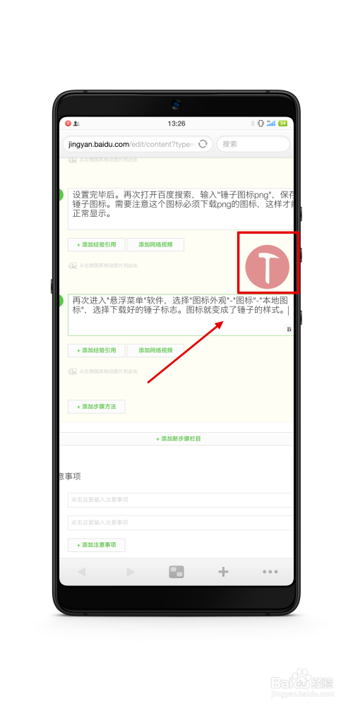 设置完毕后。再次打开百度搜刮,输入"锤子图标png",保留锤子图标。需要注重这个图标必需下载png的图标,如许才能正常显示。