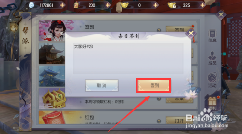 每日签到的窗口,输入签到想要说的话,点击签到这一项。