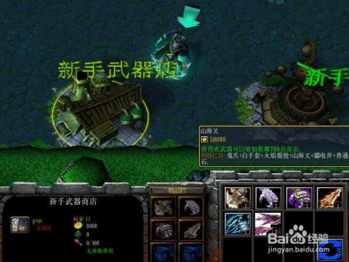 进入到基地后,先到新手兵器商铺采办几件装备