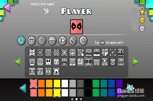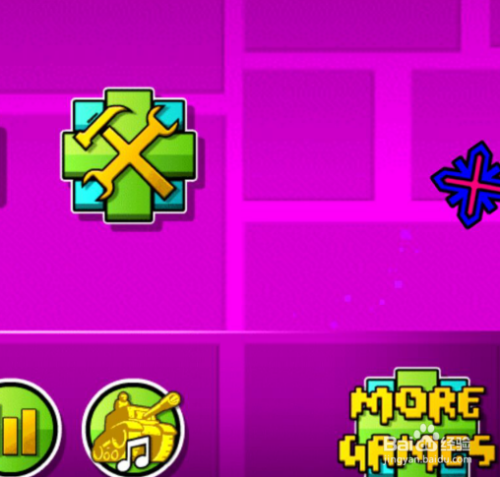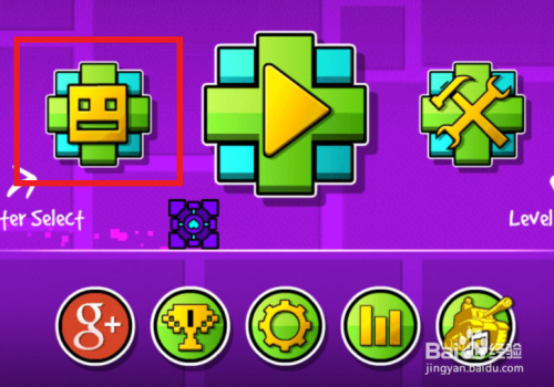 进入‘几何冲刺’的本家儿画面,点界左侧的缤纷笑状图钮,这里就是自做形态的进口。