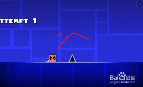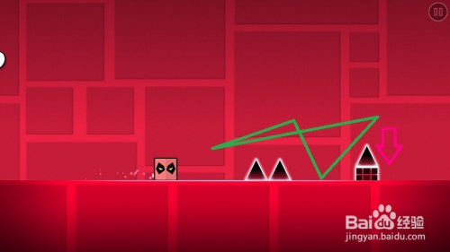 冲刺到单体刺尖时,在形距较近位置上滑,使几何物状轻盈跃过,而不被扎到。