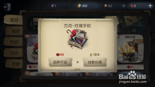 我们可以看到,保举位的第一件物品,就是杰克——玫瑰拐杖,单击采办