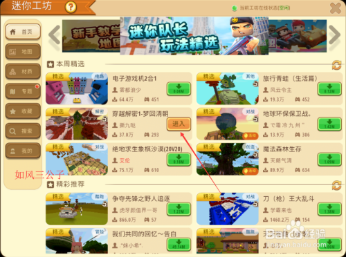 迷你宿世界游戏中的地图容量都不是很年夜,当作功下载好地图后,接着再点击【进入】按键。