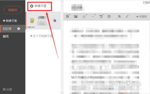 进入简书写文章的界面,然后找到【新建文章】并点击,如图: