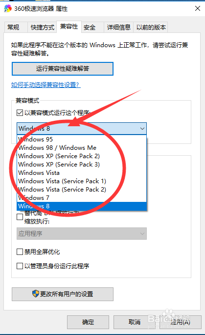 选择兼容性,以兼容模式运行这个法式,然后,选择本身需要 以哪个系统运行。