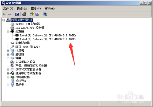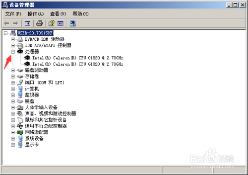 如图我们需要查看处置器的型号,点击处置器左侧的“+”,睁开,