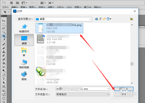 在弹出的打开对话框里找到要界面切片的图片,选中然后点击打开,如下图所示。