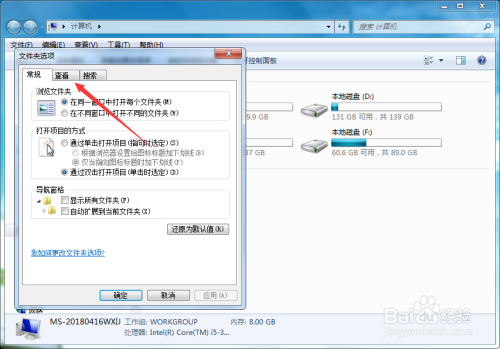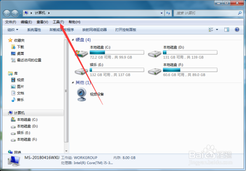 双击打开计较机,进入到计较机窗口,如图