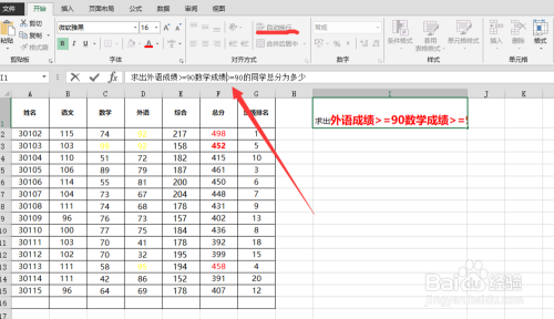 求出外语成就>=90数学成就