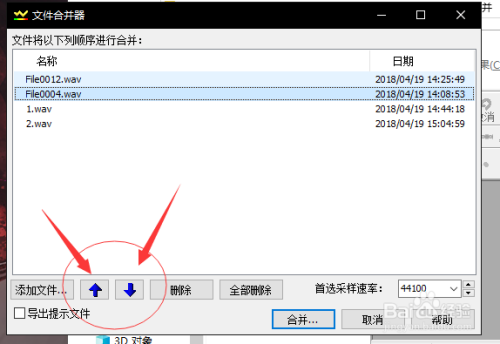 调整音乐文件挨次,鼠标拖动即可拖动,或是点击上下换位置。此挨次影响音乐归并后的播放循序。