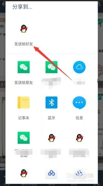 此时会蹦出体例选择界面,具体列表体例和手机功能及已装应用有关,如下图,这里点击某一应用,发送文件。