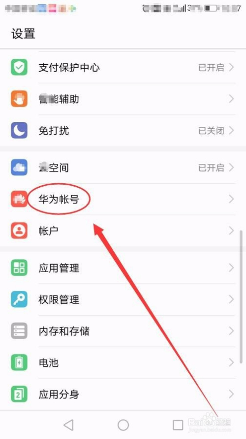 设置窗口中,选择华为帐号选项,如下图所示。