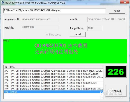 直接点击平台上的Download进行解锁断根.及不开机.定屏黑屏等软件故障刷入修复.完当作后.平台上的绿格上会显示PASS为当作功