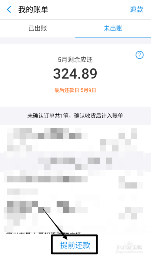 点击下方的【提前还条目】