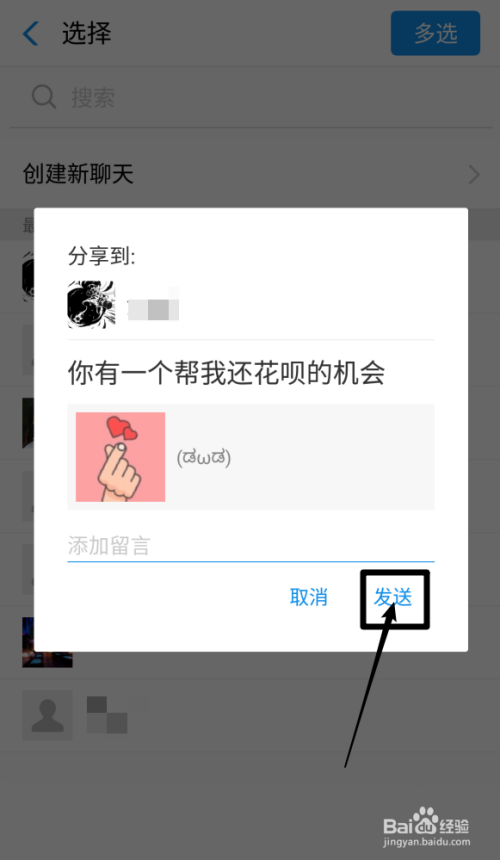 点击你要发送花呗代还的人,点击发送就完当作了
