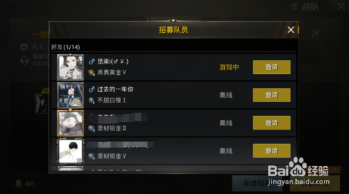 最后招募队员的页面,选择你要插手战队的老友,点击邀请这一项。
