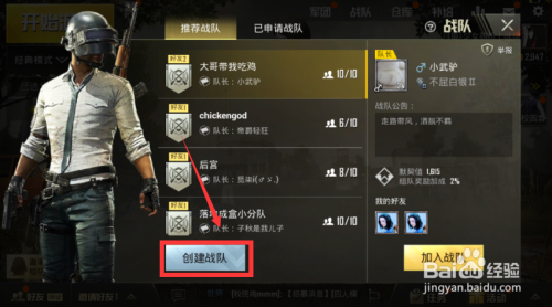 绝地求生刺激战场建立战队方式:
