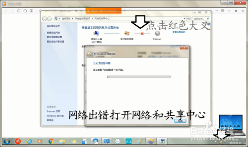 收集异常,第一时候查看使命栏通知区的收集图标,这里可以清楚地奉告用户良多有效的信息。打开收集和共享中间→点击红色的年夜叉。