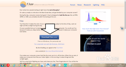 利用关头词:f.lux搜刮到该软件的官网→搜刮成果的首页首个链接→打开官网。