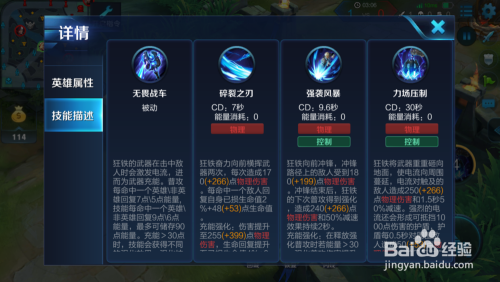 力场压制:狂铁释放三技术的时辰会获得一个护盾,而且在狂铁四周的仇敌会受到必然量的物理危险和1.5,秒的削减结果,而护盾在6秒内会每0.5,秒对规模内的仇敌造当作必然量的物理危险 。