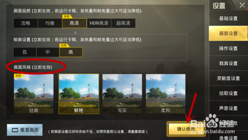 设置数据选择完毕,点击下方简直认点窜,就将画质设置好了。
