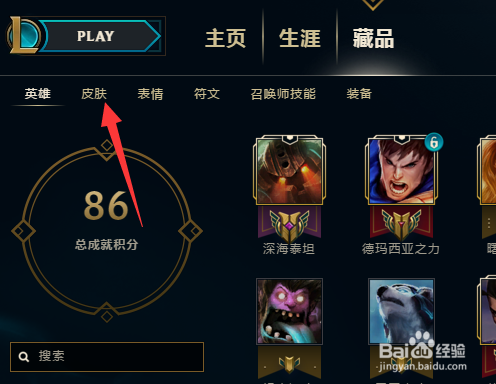 当然你可以如下图所示点击藏品,然后点击皮肤,看看有没有到。不外今天皮肤打不开,一向转圈,估量办事器端有问题。