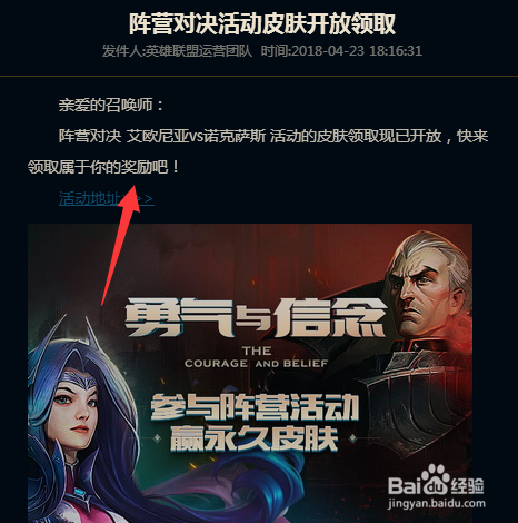 LOL英雄联盟勇气与信念阵营活动此刻已经可以领取皮肤了,当然前提是之前你有介入这个活动。下面是炳同窗我小我领取皮肤的图文记实。