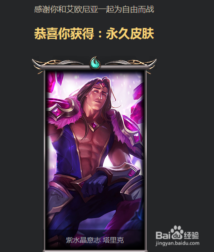 我获得的是一个宝石塔里克的永远皮肤。其实比来玩得很少,也就抽暇玩了一些人机。获得的勇气值其实很少,没想到也有皮肤。