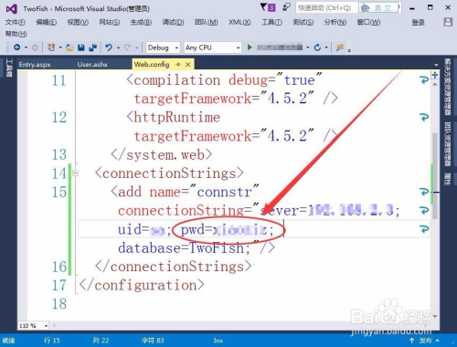 输入代码中的pwd,暗示毗连的SQL Server数据库的密码,输入本身SQL Server软件的密码即可。