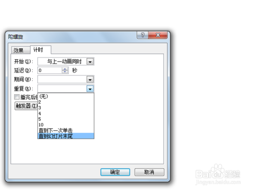 执步履画-动画窗格号令,选择所有的动画,调出计时选项卡,设置反复为直到幻灯片末从头至尾。