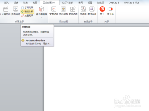 首先启动ppt2010,执行口袋动画-进度加载号令。