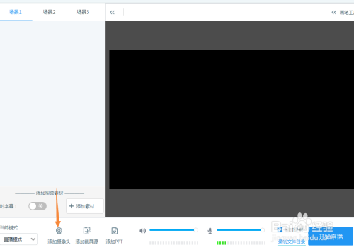 进入客户端后,点击箭头所示钮,即可弹出摄像头所拍摄的镜头框。