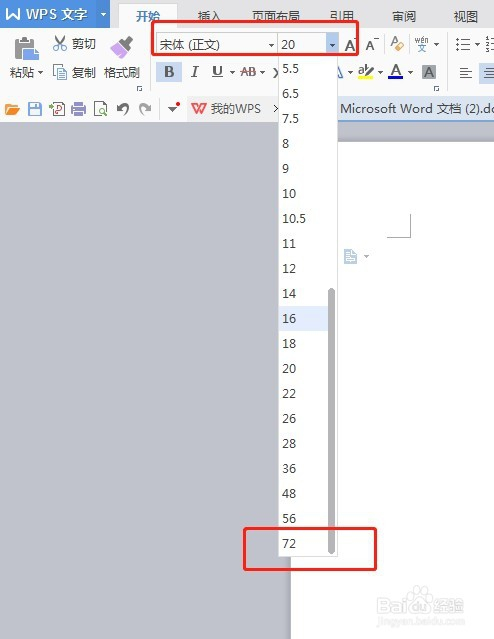 在东西栏“起头”下方选择字体的大小,选择最年夜的字号72
