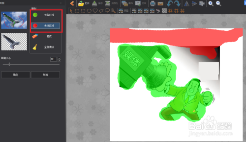 点击画刷,选择绿色画刷(保留区域),把要保留的区域全数刷一下,然后选择红色画刷(去除区域)把不要的处所刷一下。设置完当作后按确定