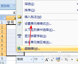 这里筹办输入8论理学生的学号。,选择A2-A8单位格,右键单击设置单位格格局