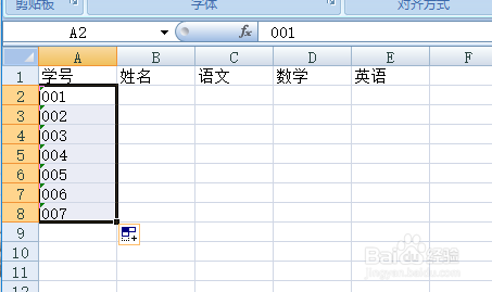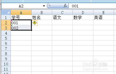 单击确定按钮。返回编纂窗口,在A2A3中输入001和002.拖住鼠标标的目的下拉填充其他单位格