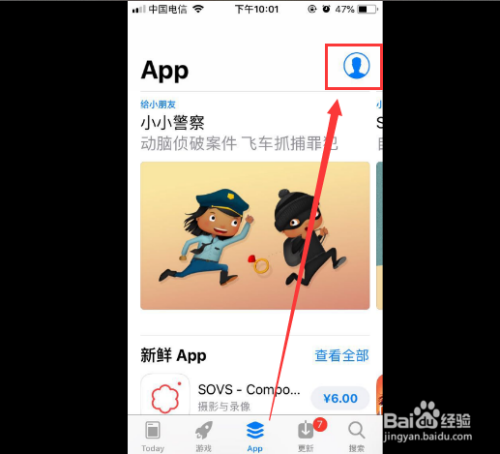 因为苹果里安装的软件充值都是经由过程appleID进行充值的,所以我们首先需要给appleID设置付条目体例,点击进入APPle store,然后点击右上角的小我头像进入,然后再点击小我帐号进入。
