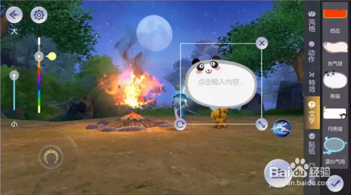 第六步:很多人喜好在照片上贴纸,猛火如歌摄影中是有这个功能的,省的我们去P图了,直接在游戏中就可以,我们打开贴纸,选择本身喜好的贴纸放到照片合适位置即可,如下图所示。