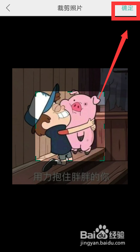 剪裁照片的页面,剪裁一下图片的大小,点击确定这一项。