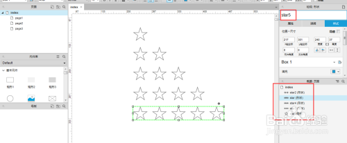 6. 将“星星1~星星5”这五个外形进行叠加放在一路,星星5放在最下面,星星1放在最上面-->对这五个外形进行左对齐摆列。
