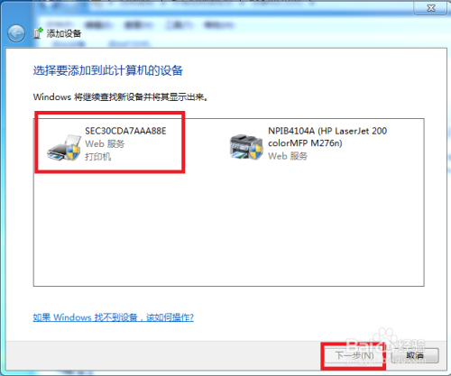 接下来的界面中会呈现良多可以添加的打印机列表,选择需要的扫描仪并点击【下一步】按照要求安装即可。