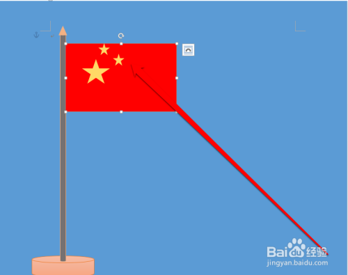 利用的word图形东西,在word文档绘制一个旗台一个旗杆,然后再把红色国旗绘制在旗杆上,画上五角星一面五星红旗就完当作了。